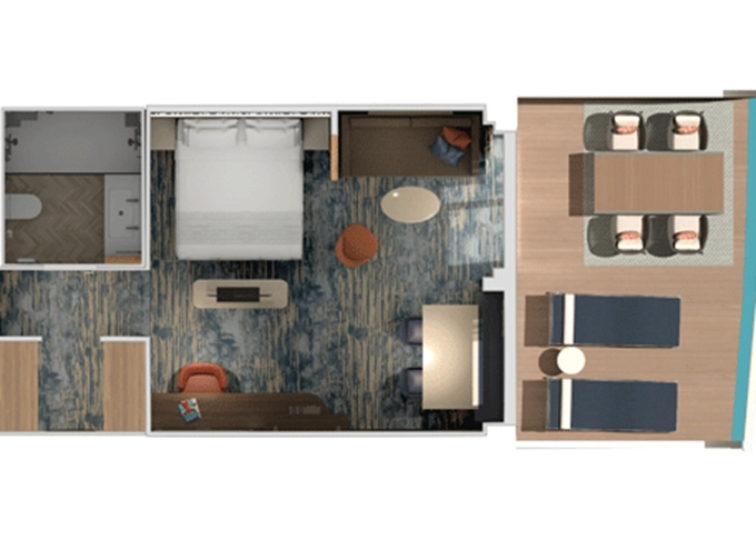 | HU - Suite Havana Cabana Corner 33 m² + vonkajšie rohové patio 15 m². 8. paluba vpredu. Max 3 osoby. Tropický štýl, vstup do exkluzívnej zóny Havana. Výhody Suite. | 5 514 € 2 757 € za osobu | ||