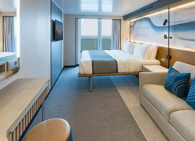 B1 - Kajuta s balkónom Aft-facing 25 m² / balkón 9 m². 9. paluba - vzadu. Max 2-4 osoby. 6 560 € 3 280 € za osobu